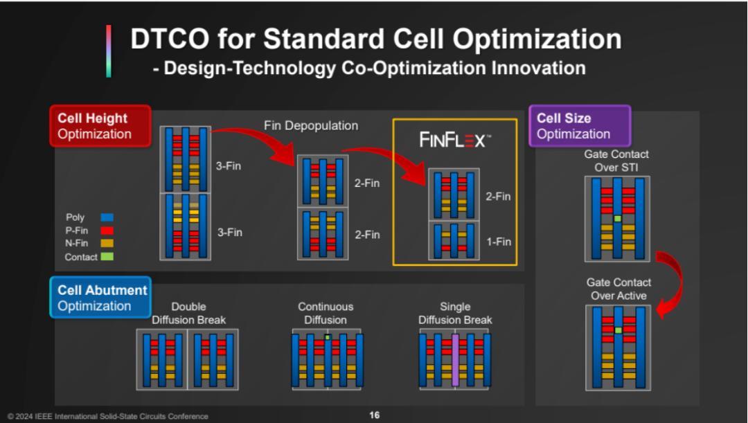 通过DTCO,台积电的设计和技术团队共同努力,创新的提出了FinFlex的新想法。本质上,允许设计人员混合和匹配单鳍器件、双鳍器件或者双鳍器件和三鳍器件,因此我们可以同时实现最佳的性能、密度和功耗。