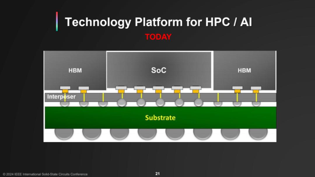 关于HPC和AI方面,如果看看今天所有的人工智能加速器,无论是GPU还是TPU或者是定制的ASIC,这些本质上是具有某种特定的集成方案。基本上,使用CowoS技术带来的先进芯片。如今主要是5nm技术和HBM在一起,Kevin Zhang认为这还远远不够。
