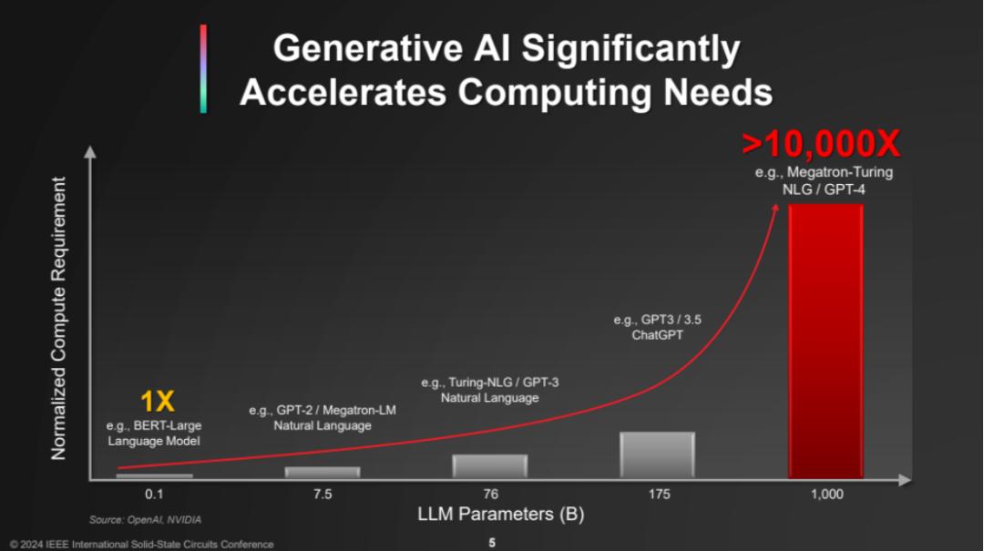 看图上陡峭的曲线,这背后其实是对算力的永不满足。因此,英伟达首席执行官黄仁勋曾说到:“Chat GPT是人工智能的iphone 时刻。”我们可以使用不同的方式描述AI,但确定的是,AI需要大量先进的半导体,这个需求数超越人们的想象。