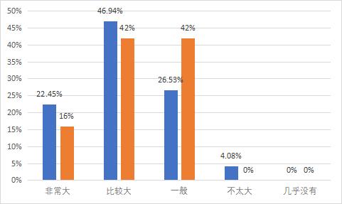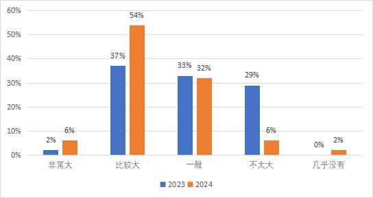 在文旅双创政策的支持力度方面,专家今年的态度比较审慎,认为政策支持力度“非常大”的占比下降了6.45%,“比较大”也有4.94%的下降,而“一般”占比上升了15.47%。(见图6)