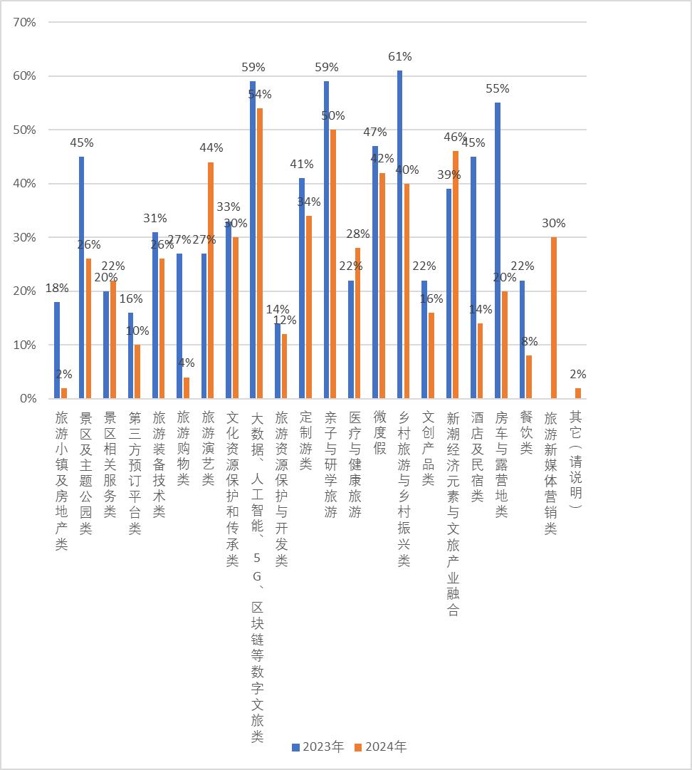 图2 2023年与2024年文旅双创业态与产品集中领域的预期对比分析