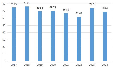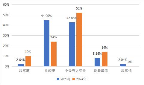 纵观2017年到2024年信心指数(见图15),从2018年(76.06)到达峰值后,随即下降趋势明显,2023年(74.3)信心指数强势反弹后,今年(68.62)的信心指数又呈下降,但仍比疫情期间的2021年和2022年高。
