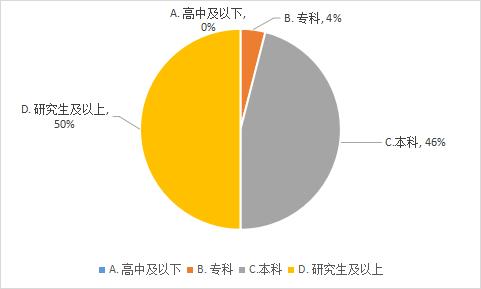 受访专家的文化程度大部分集中在本科以上,尤其是研究生及以上学历占50%,本科学历占46%。