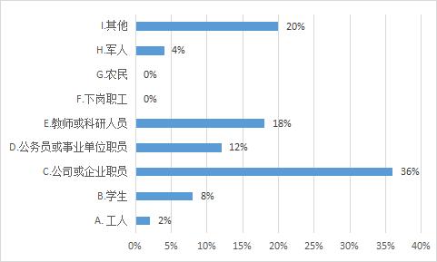 创业者在创业前普遍任职于公司或者企业,占到36%,创业前是公务员或者事业单位职员的比例为12%,教师或科研人员的的比例为18%,学生比例占到了8%,军人的比例占4%,工人的比例占2%,其他的比例占了20%