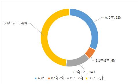 创业者创业前与文旅相关工作的年数为6年及以上的人数最多,占到48%,之前没有文旅相关工作经验的占比较高,占32%,工作经验3年-5年的占到14%,工作经验在1年到2年的人数最少,占6%。