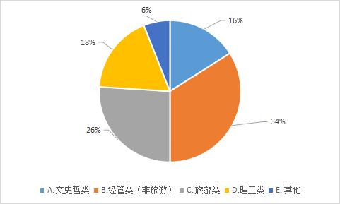 创新创业企业的创始人学科背景分布较集中,其中经管类(非旅游)背景较多,占34%,旅游类占26%,文史哲学类占16%,理工类占18%。