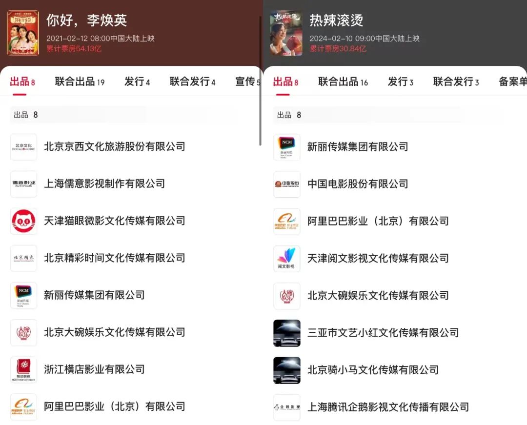 《你好,李焕英》与《热辣滚烫》出品方(图源:猫眼)