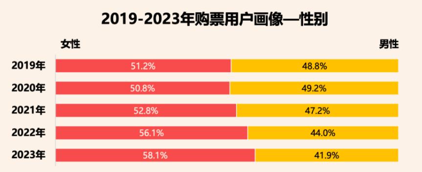 根据灯塔数据显示,女性观众连续三年上涨,2023年女性观众占比攀升至58%,女性的观影需求逐渐主导市场,而电影作品的女性角色也成为了受关注的对象。