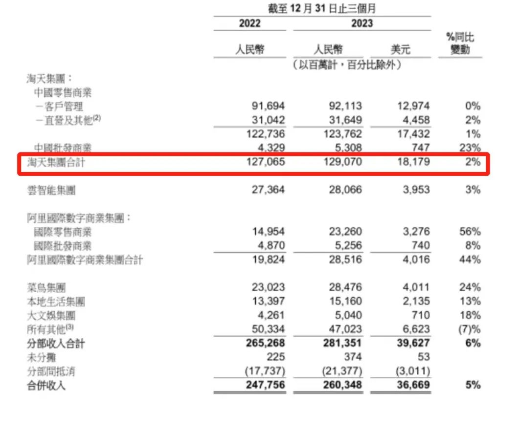 仅看阿里巴巴,此举还能看出一些改革破局的端倪。2023年的阿里巴巴历经变革和同行压力两种挑战,前有“1+6+N”的组织变革,后有同行拼多多的股票市值反超,皆在无形中带来企业转型压力。据阿里巴巴2024财年第三季度财报,淘天集团当季收入1290.7亿元,同比增长2%,经调整EBITA(息税前利润)599.30亿元,同比增长1%。不过,国内零售商业客户管理收入与去年同期基本持平。