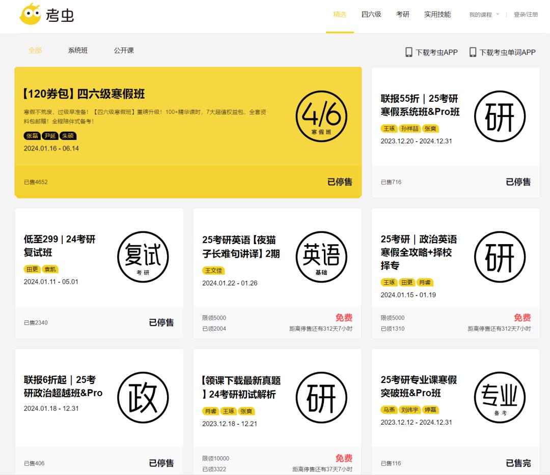 2020年,共有120万名考生使用考虫考研相关课程,据官方数据显示同期有377万人报名研究生考试。近5年,考虫考研品类的产品累计播放超过1亿次,累计播放时长6000万小时,付费学员完课率达到80%。