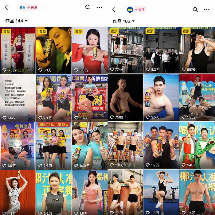 海南记得开心文化传媒有限公司是椰树集团孵化的新媒体公司,主要负责椰树的宣传工作,其负责人尹丹丹曾在《电商在线》的采访中回忆,在2021年以前,椰树也拍了许多短片、宣传片分发到公众号等渠道商,但因内容风格非常官方,传播效果并不好。直到尹丹丹偶然发现了椰树式模特的流量密码。