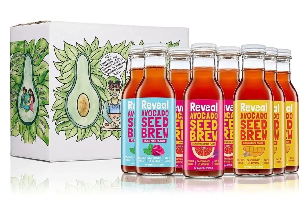 美国饮料公司Reveal,将废弃牛油果核制成富含益生元和抗氧化剂的饮料。