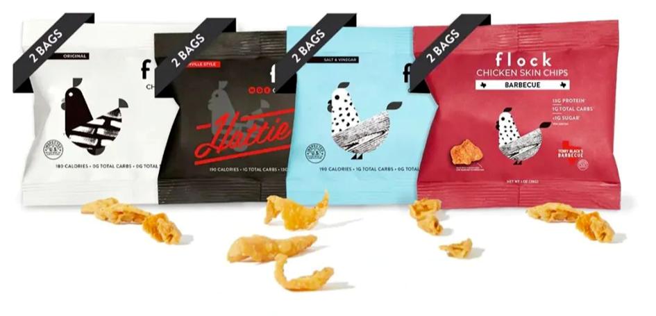 生酮友好型、 低碳水化合物和高蛋白的新型小零食——鸡片 图片来源:Flock Foods官网