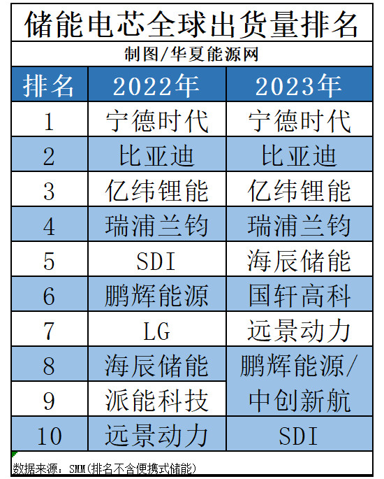 与2022年相比,新榜单显示出较大变化,储能电芯市场格局已然“变阵”。