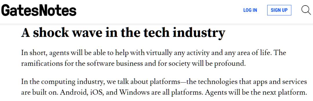 正如比尔盖茨在2023年的笔记中所言,“Agent将会冲击生活的所有领域”。