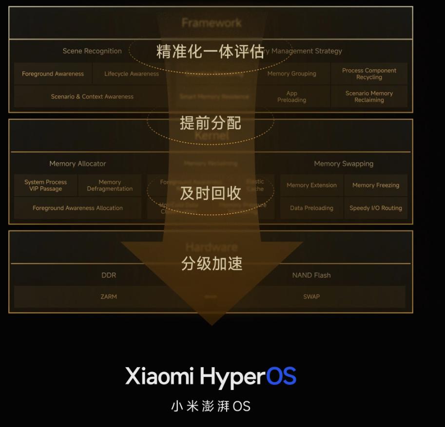 另一边,在软件层面,是2023年手机厂商集体对手机OS的升级。其中,小米的澎湃OS在手机内存上引入动态资源调度功能,手机系统能够提前预判应用的资源占用,保障手机在不同使用情况中不卡。同样,在OPPO更新的Color OS 14中,也添加了系统调度性能优化,能够后台保活超40个App,能够基本上覆盖一台手机中所有常用App在后台第一时间唤醒。