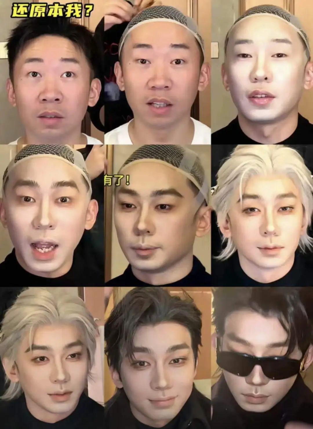 这条时长3分钟的视频中,杨迪经历了戴头套、粘胶带、缩鼻翼等多道前期工序,再配合刷墙一样的粉底厚涂,以及神似兵马俑的阴影修容。最终万丈高楼平地起,杨迪摇身一变男团偶像。