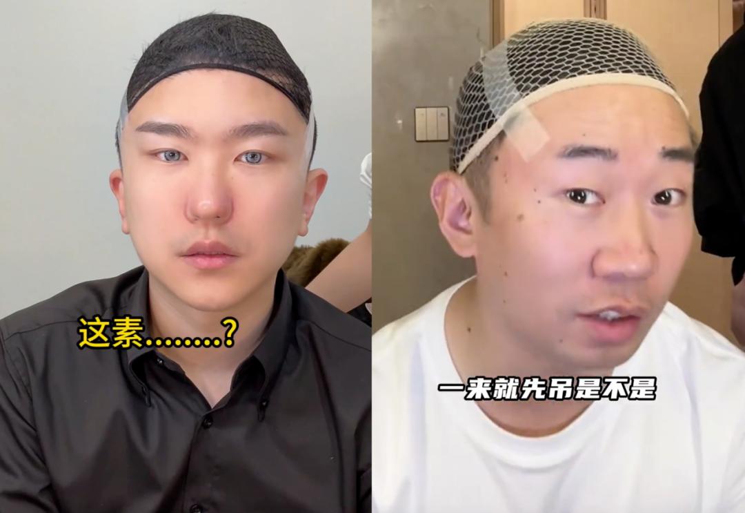 作为接受爆改的主角,外型粗犷的东北搞笑博主“张百乔”在视频一开始表示难以置信,认为自己连美瞳可能都戴不上。但在“化妆师兔子”堪称狂野的爆改手法下,他不仅被扒开眼皮戴美瞳,就连假睫毛、假发都安排得服服帖帖。