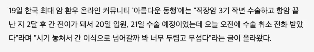 韩国一位手术被延期的患者在网上求助