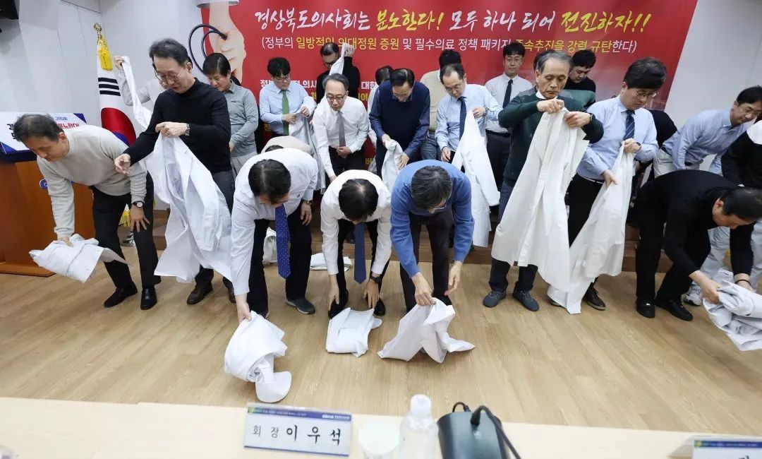 宣布罢工的韩国医生纷纷脱下象征职业的白大褂