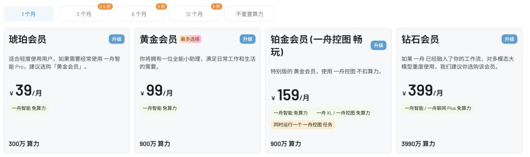 「一舟智能」的会员体系 | 图片来源:「一舟智能」官网