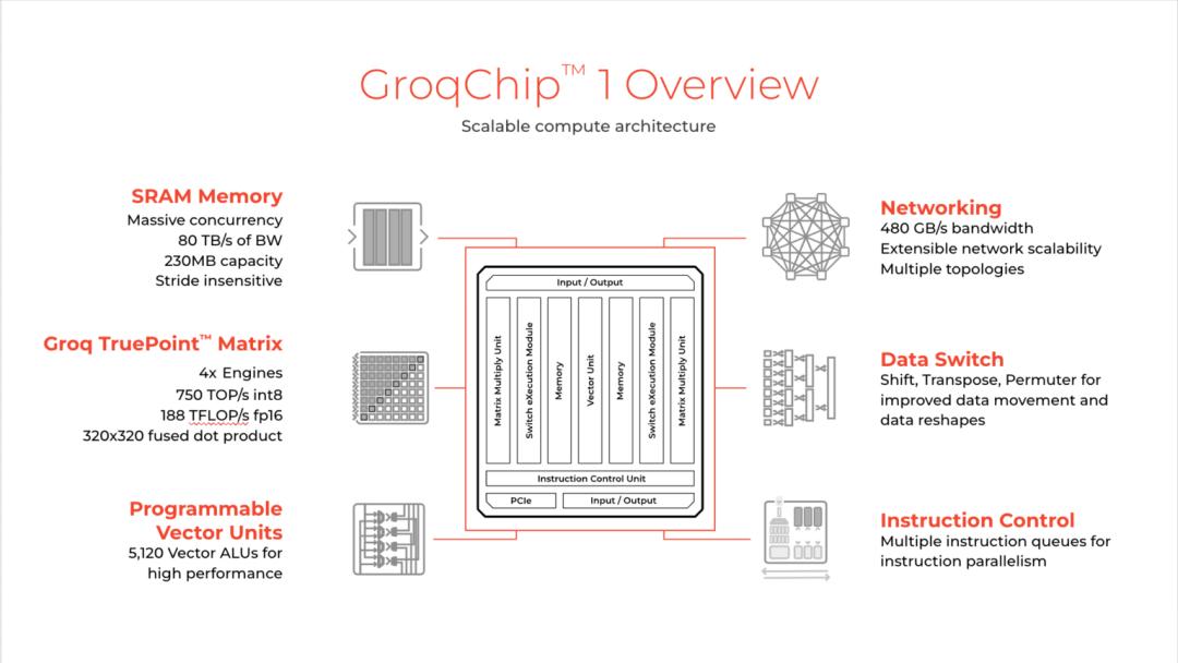 简单来说,Groq 的 TSP 技术就像是一个交通系统,通过软件控制红绿灯,让所有同一方向的车辆在一条路上快速前进,从而大大提高了效率和速度。