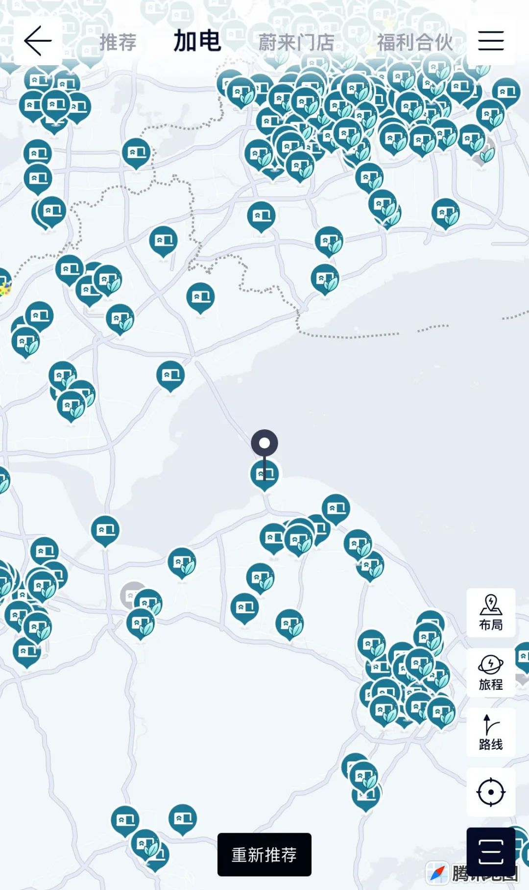 图|杭州湾南北,蔚来换电站密度是很高的。不过在节假日么,可能电池有点紧张