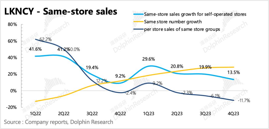 对于单店同店增速所反映出的经营状况,我们上季度财报已经着重讨论。但换句话说,四季度瑞幸在淡季和竞争的高压下,还头铁加速开店,因此单店下滑扩大也就在所难免了。
