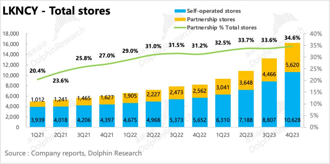 新增的近3000家门店上,1821家为自营门店,1154家为加盟门店,相比上季度,加盟商的支持明显增加。