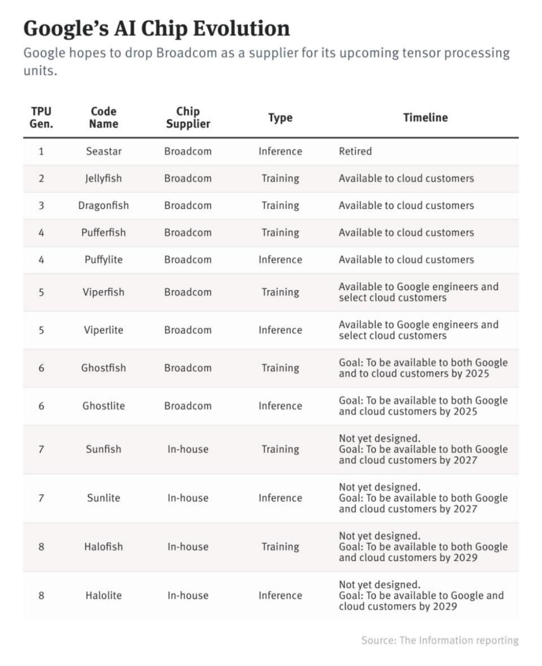 谷歌与博通合作,负责谷歌TPU的物理设计,本质上是基于谷歌的设计图纸开发芯片。此外,博通还负责监督台积电的芯片代工业务。自谷歌和博通开始合作以来,谷歌每两年左右发布新一代TPU。知情人士称,谷歌和博通把每一代TPU的性价比提高了至少50%。