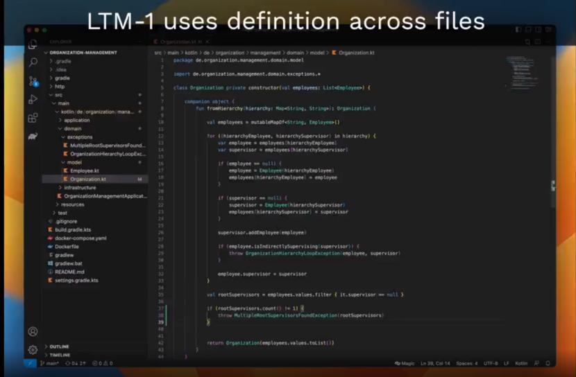从功能上说,LTM-1的主要应用场景在于代码补全,比如可以生成更长、更复杂的代码建议。