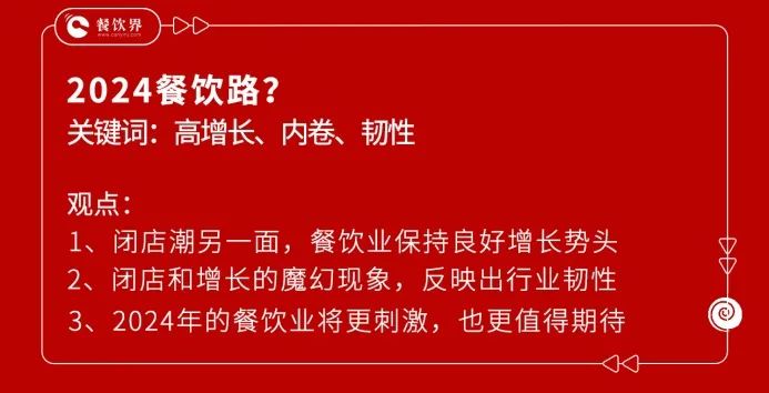 所以,在这里,不得不提醒一句,2024年的餐饮业,“玻璃心”者慎入。较之2023年,2024年的餐饮业或将更内卷,更刺激。