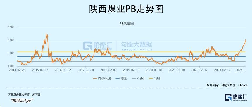 去年7月至今,A股整体持续下跌,导致了市场风险偏好极低,不少主力资金疯狂抱团陕西煤业在内的煤炭龙头。期间,陕西煤业从16元一路飙升至如今的26.26元,累计涨幅高达64%。PB估值也从1.6倍拔高至如今的2.95倍。