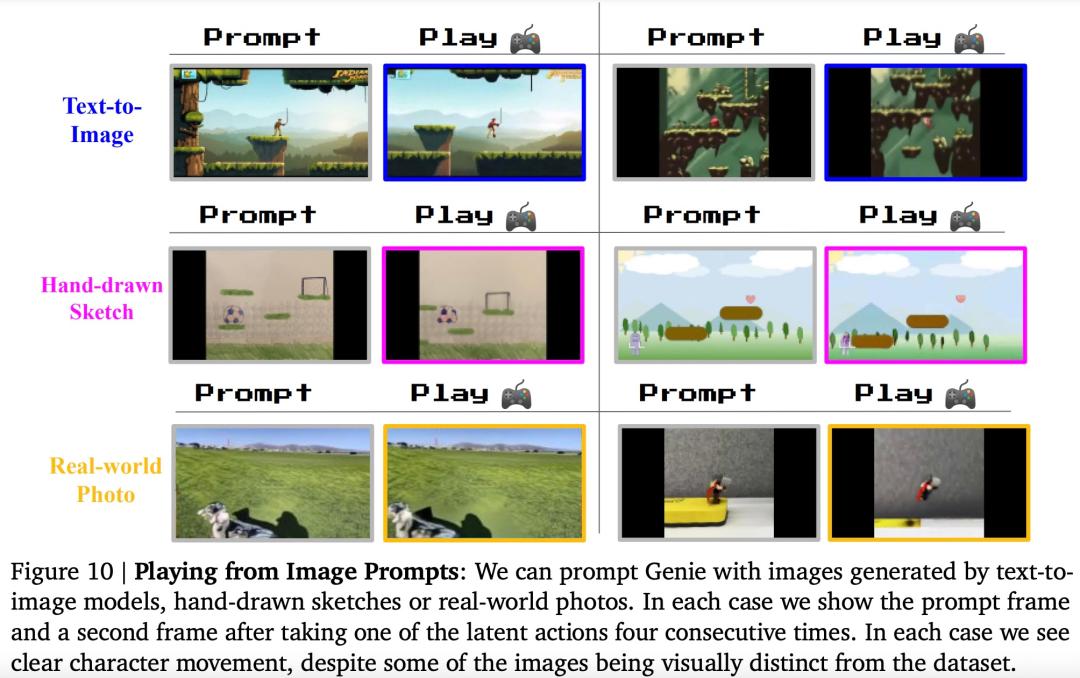 再次,谷歌认为 Genie 是实现通用智能体的基石之作。以往的研究表明,游戏环境可以成为开发 AI 智能体的有效测试平台,但常常受到可用游戏数量的限制。