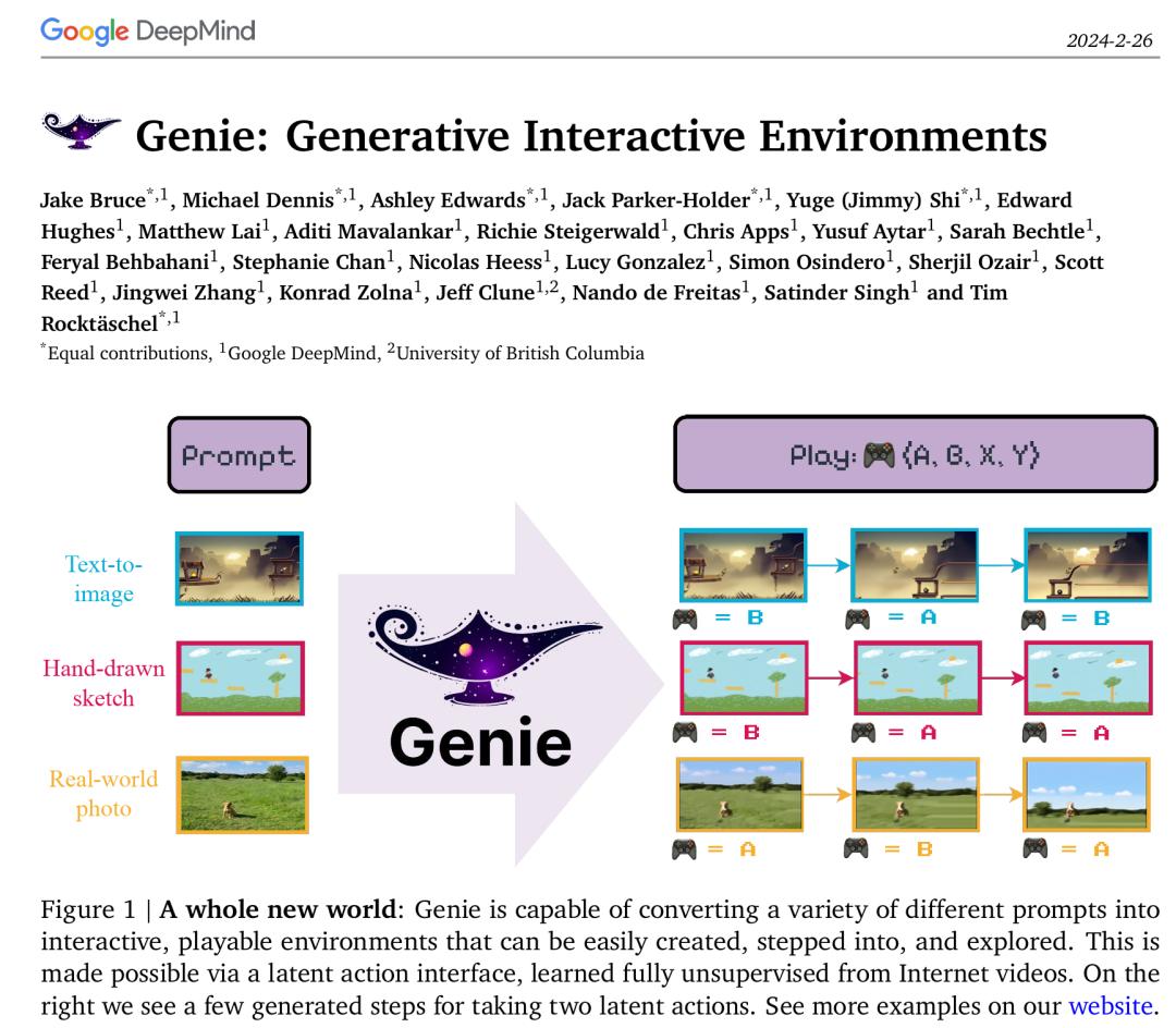 谷歌 DeepMind 已经放出了 Genie 论文。