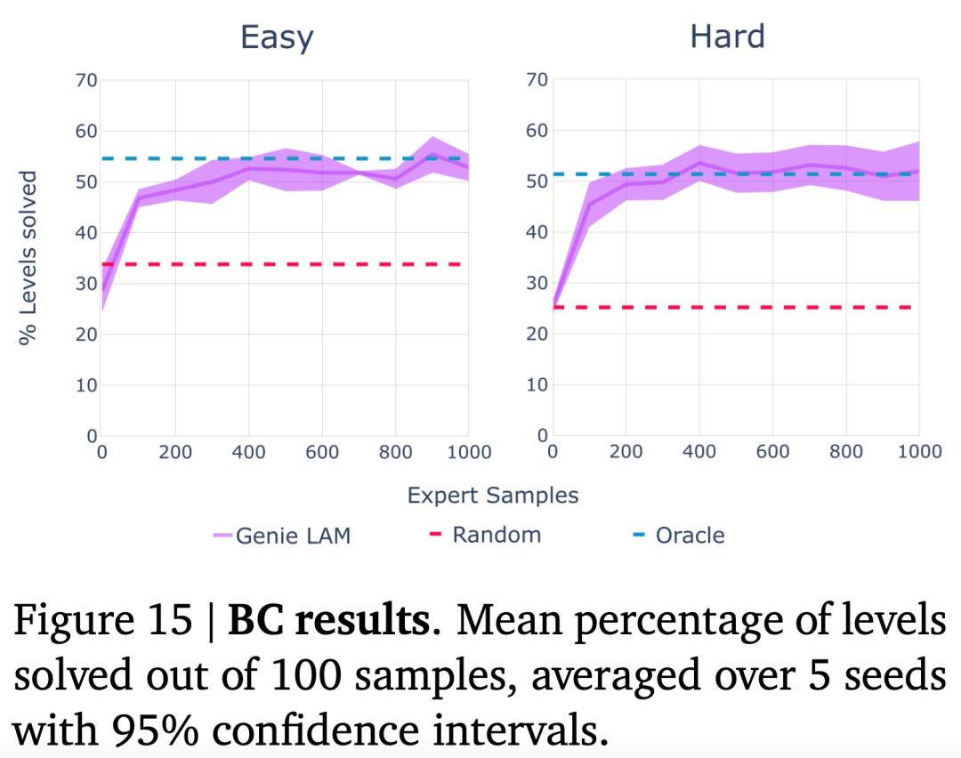 作者在程序生成的 2D 平台游戏环境 CoinRun 中进行评估,并与能够访问专家操作作为上限的预言机行为克隆 (BC) 模型进行比较。
