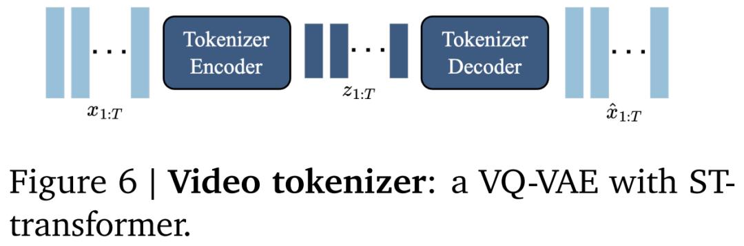 ,其中𝐷 是离散潜在空间大小。分词器在整个视频序列上使用标准的 VQ-VQAE 进行训练。