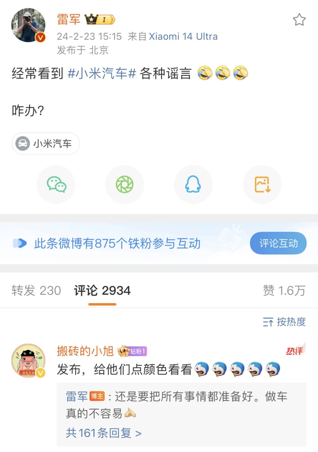 近日,雷军在社交媒体上无奈地表示“经常看到小米汽车的各种谣言,咋办?”