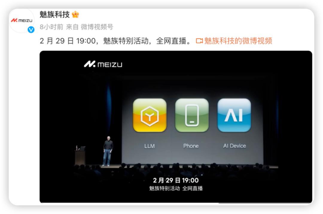 2 月 23 日,魅族科技官方正式宣布魅族特别活动: “ 2 月 29 日 19:00 相聚珠海 · 长琴岛,共同见证魅族迈向全新 AI 时代的历史性时刻!”