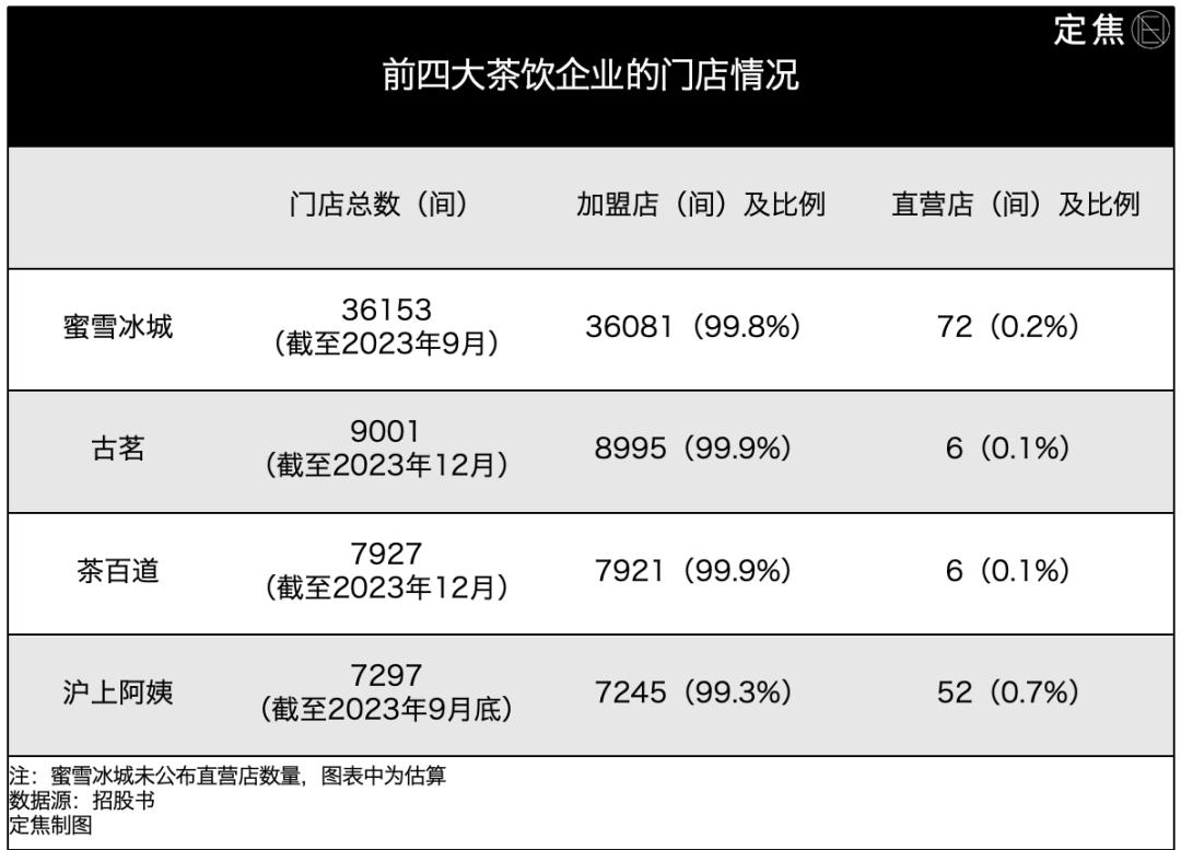 虽然茶饮四巨头庞大的销售网络是靠加盟店搭建起来的,几千家、几万家店几乎全是加盟门店,只有零星几家直营店,但它们赚钱也不主要靠加盟费。