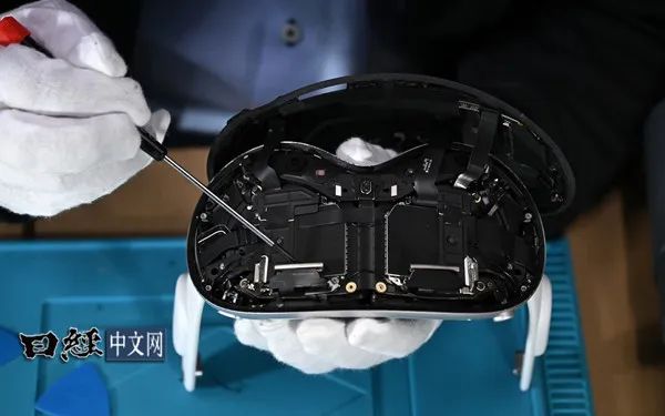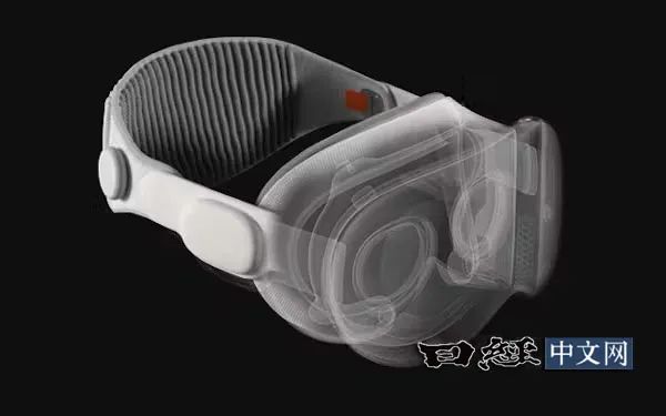 为了减轻VR晕动症,在配备镜头的光学单元的上部嵌入了长4厘米的马达部件。这是用于自动调节的部件,不管谁戴,都保证镜头位置都在两眼的正前方。这是其他眼镜型终端所没有的机制,被认为是苹果自主设计和开发的机构。