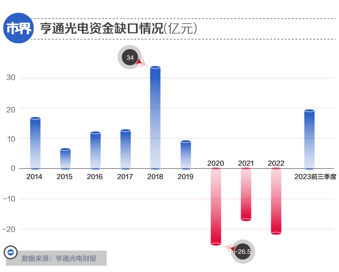 其实,亨通光电当年募资的50亿元中,除扩张业务所用外,还留下14.5亿元用于补充流动资金。通过财报不难看出,亨通光电长期处于资金短缺的状态,虽然在募资后过了三年“富裕日子”,但新的资金缺口已经出现,不仅接近20亿元大关,与上一年间产生的差值,也是近几年来最大的一次。