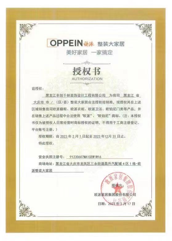消费者们提供的欧派家居给千林装饰的授权书