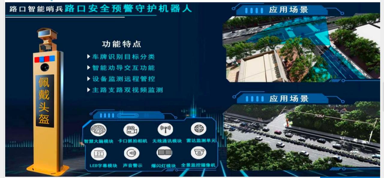 - 端侧,弘目打造了机器人一体化前端,包含路口智能机器人和主路段的交安智能设备,具备识别、收集信息、监测交互等功能。