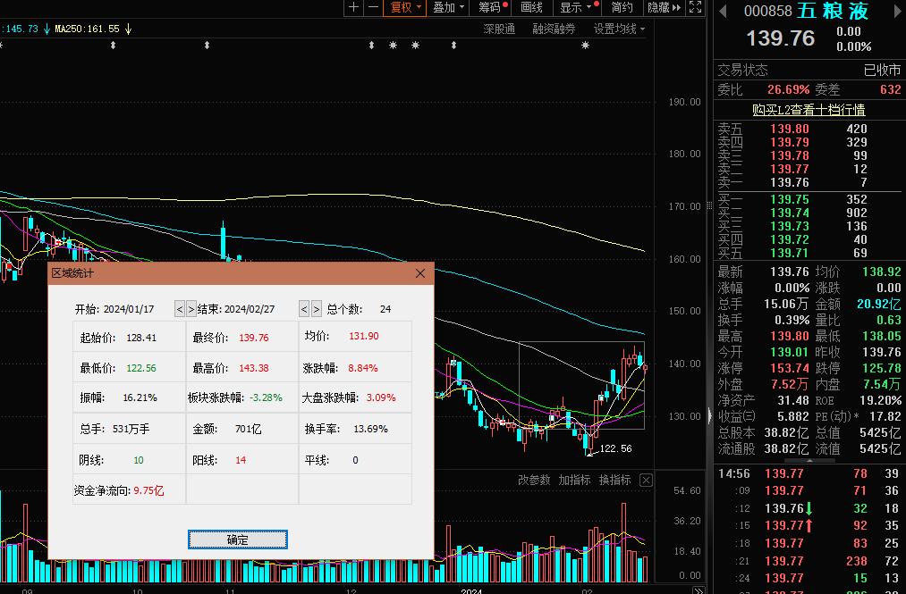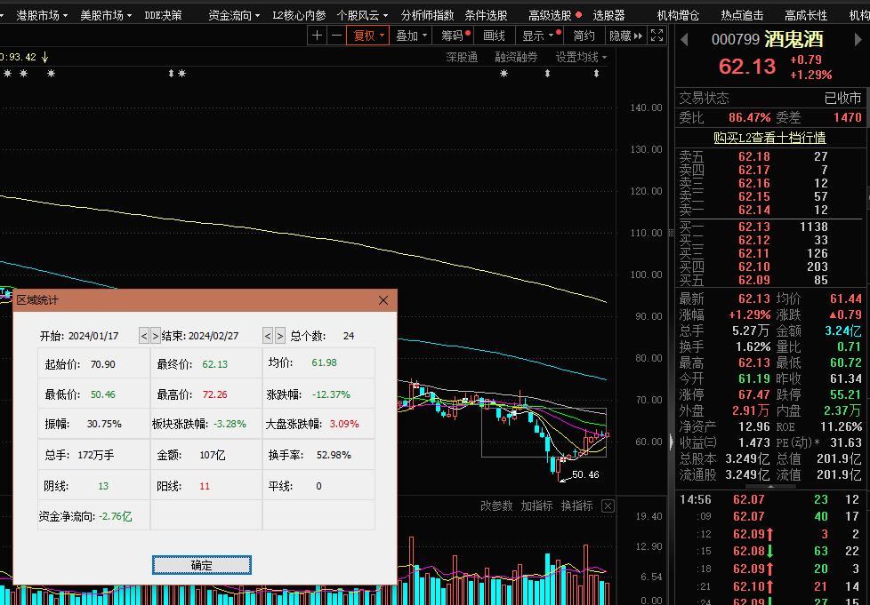 从草根调研数据及其他媒体线下采访看,龙年春节期间,高端白酒动销表现较好,地产名酒表现也比较强劲;从最新研报看,多家券商对业内头部白酒中长期走势看好,也有个别白酒盈利被下调预期;从股价表现,春节期间国内A股白酒指数-4.65%,同期,沪深300上涨5.87%,显然白酒股整体没有跑赢指数。