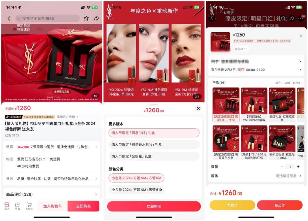 图源:抖音、京东、天猫YSL官方旗舰店