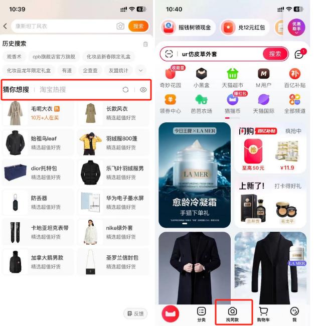国内某家淘宝代运营服务公司经理张震告诉价值星球,淘宝仍保留“淘宝热搜”,而天猫将“找同款”放到一级菜单背后的原因,本质还是因用户使用淘宝时的强搜索习惯。