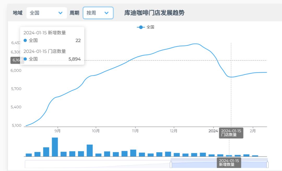 年前卖酒的风波刚过,年后,库迪又被曝出跌破6000家门店。虽然库迪很快出面澄清,闭店增多是因为学校门店放假所致,但从极海的数据来看,早在1月15日,库迪的门店就已经跌破6000家。
