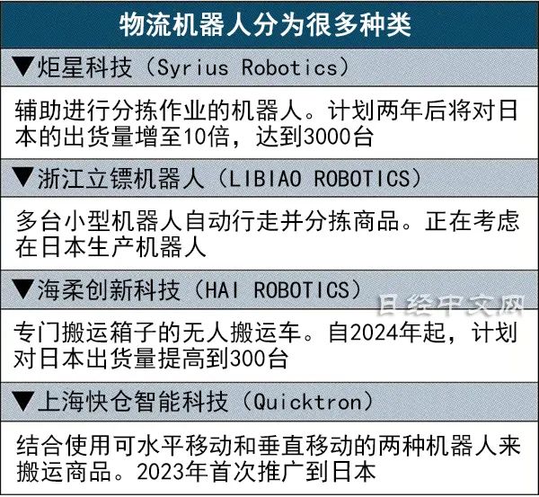 研发和销售“物流机器人”的中国初创企业正在扩大日本业务。由于日本的劳动规定自2024年发生变更,物流行业正面临被迫提高业务效率的“2024年问题”。中国企业的另一个目的是,在面临诸多课题的日本磨练技术,并将其反向运用到需求有望扩大的中国市场。