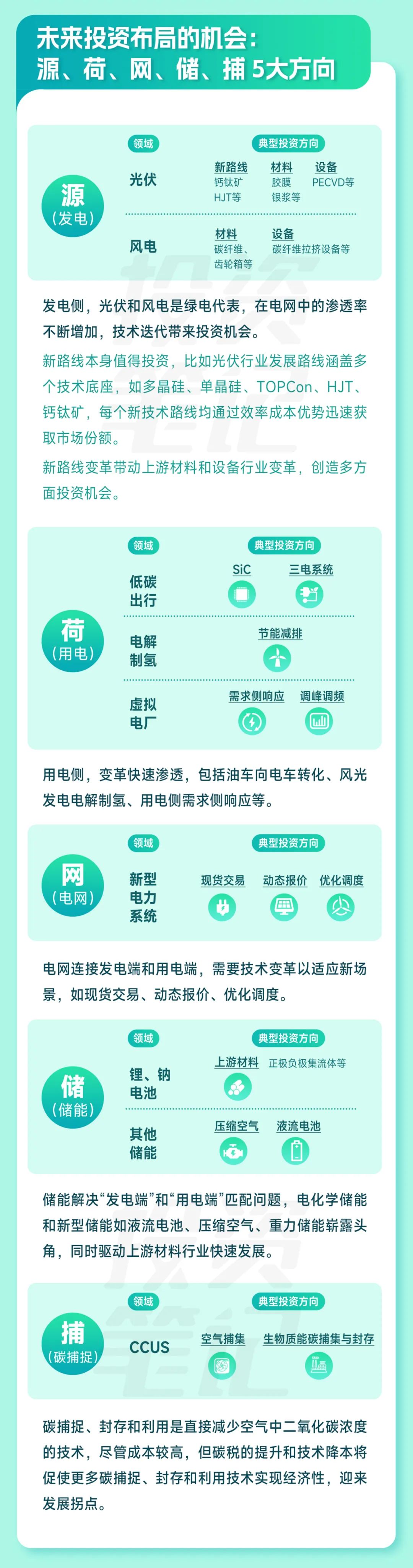 在我们看来,未来环境科技领域投资布局的机会在哪里?其实在源、网、荷、储、捕这5个大方向,都存在大量的机会。